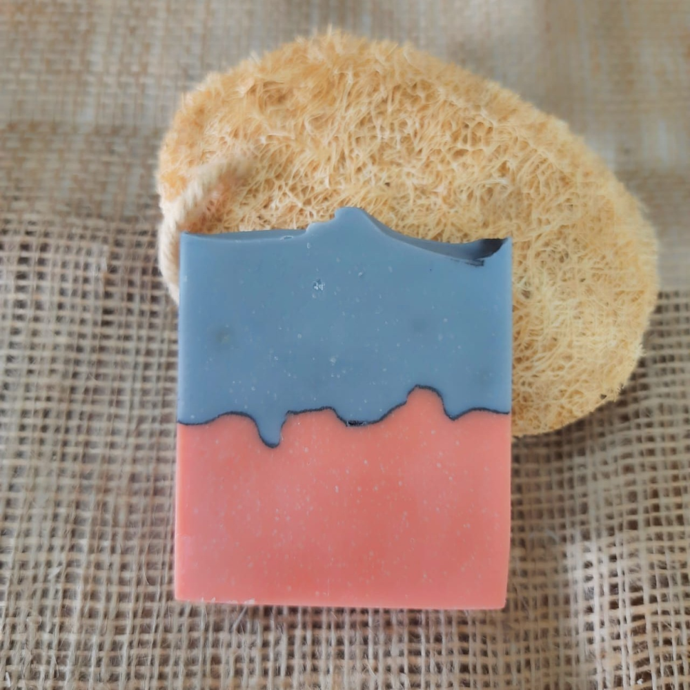 Ingredients: Cold Pressed Coconut Oil, Rice Bran Oil, Cold Pressed Groundnut Oil, Castor Oil, Vitamin E Oil, French Pink Clay, Serbian Blue Clay, Sodium Hydroxide (Lye), Rosemary, Cedarwood, Bergamot, Ylang Ylang Essential Oils.