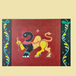 This motif 'Navagunjara' is a creature composed of nine different animals in the Pata-Chitra style of painting, of the Indian state of Odisha. The beast is considered a form of the Hindu god Vishnu, or of Krishna, who is considered an Avatar of Vishnu. I had the privilege of learning this art from the folk artists of Odisha. This, made to order, piece will look beautiful in your living room. It is painted on a 18*24 inch canvas and size can be customized. The photograph may show a very slight colour variation.